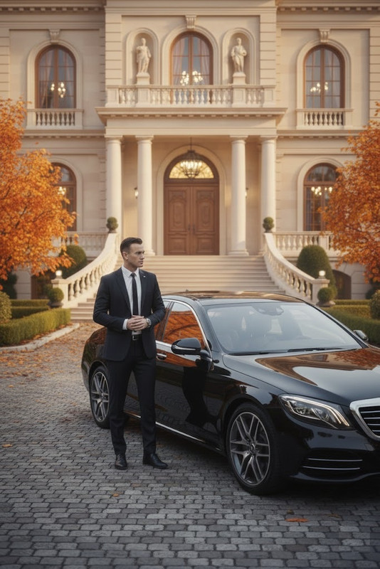 Рівно о 8:00 вже чекаю біля головного входу. Як і належить, стою нерухомо біля машини, щоб відчинити двері принцесі.