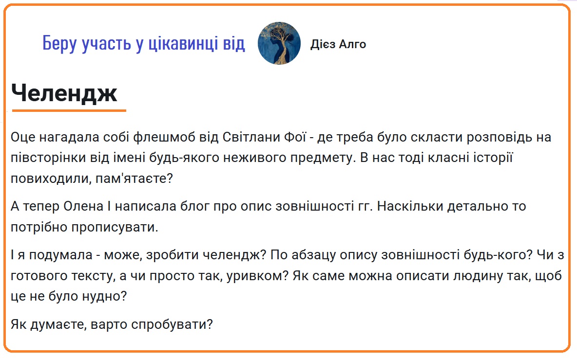 Єва Ромік, Так, пишу зараз, і конкурсне оповіданнячко з ним.