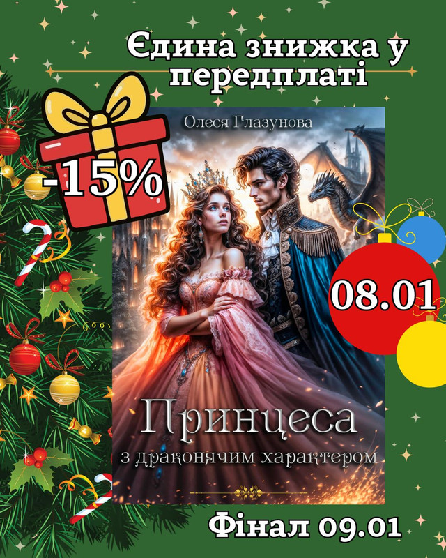 Сьогодні я до вас зі знижкою на романтичне фентезі «Принцеса з драконячим характером». Завтра вийде фінальний розділ роману та епілог. Після завершення передплати, ціна книги зросте, тож зараз саме час придбати книгу за найнижчою ціною.