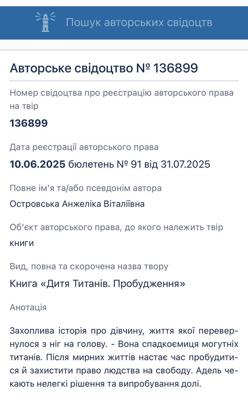 І вишенькою на торті посилання на свідоцтво авторського права в ленті пошуку✨