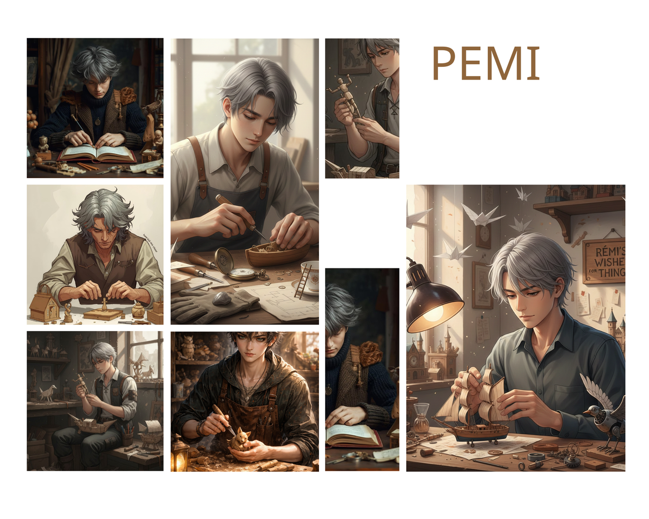 Його руки завжди щось створюють. Дерев’яні фігурки, прості символи, маленькі речі з сенсом. Для Ремі це спосіб говорити зі світом без слів. Кожна річ — як обіцянка: я бачу тебе, навіть якщо ти сам себе не бачиш.