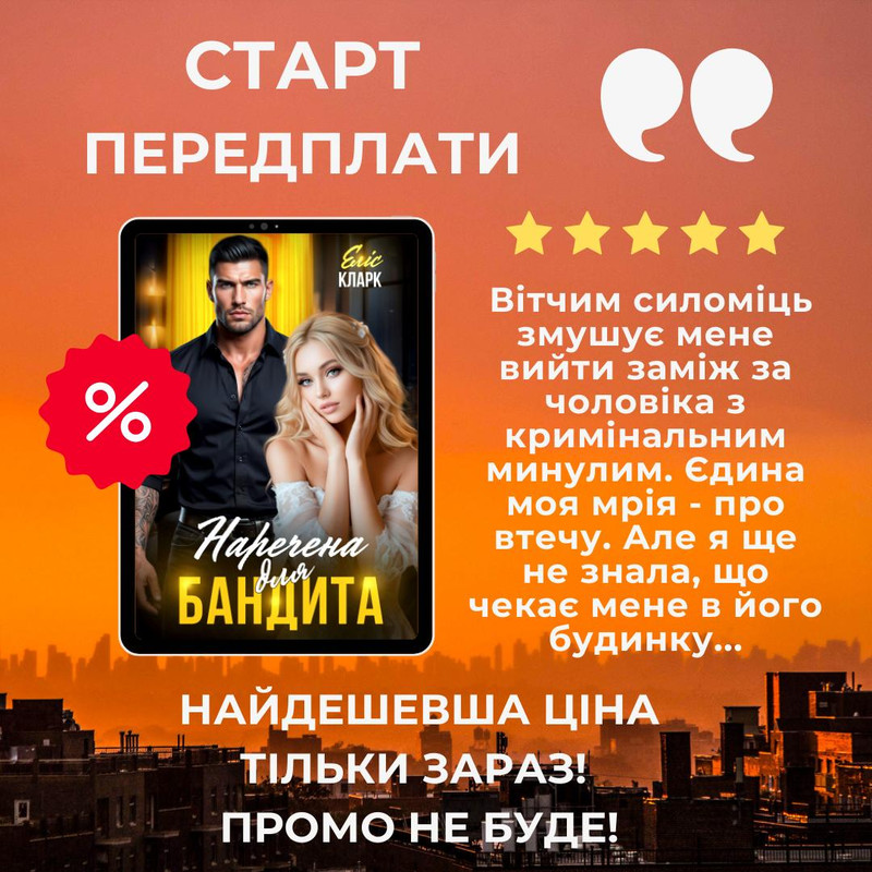 Друзі, запрошую до новинки від Еліс Кларк "НАРЕЧЕНА ДЛЯ БАНДИТА"! Сьогодні і ще кілька днів цю книгу можна буде придбати за мінімальною ціною!