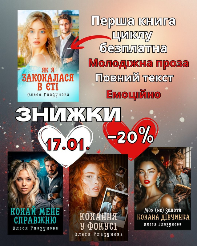 Я сьогодні до вас зі знижками на усі книги циклу "Кохання понад усе". Перша книга про Софію та Етьєна "Як я закохалася в єті" БЕЗПЛАТНА.