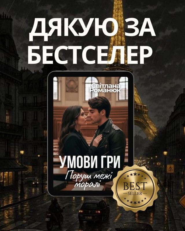 Я щиро радію, що ви мені довіряєте, купуєте книгу «Умови гри. Поруш межі моралі» і проживаєте цю історію Еліс і Леона разом зі мною. Кожна ваша емоція, для мене безцінна.
