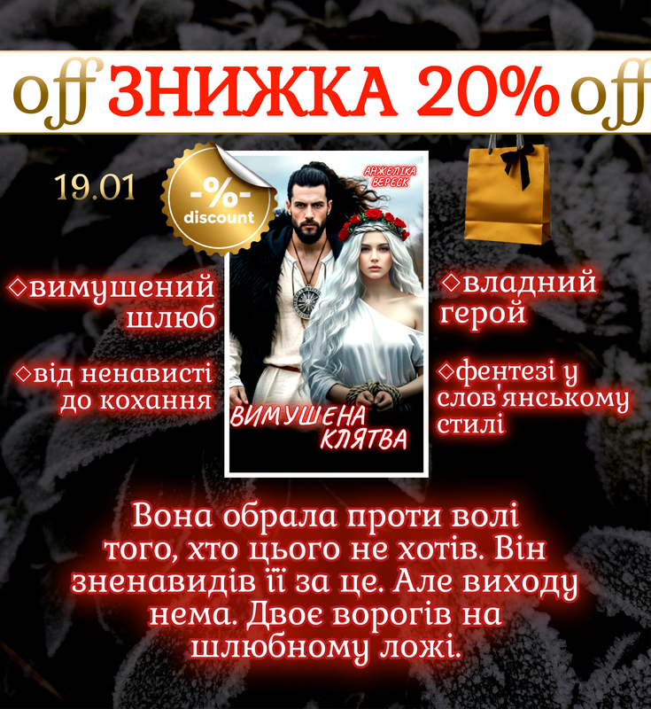 Мої любі! Сьогодні діє знижка на книгу ВИМУШЕНА КЛЯТВА, і одночасно із цим на моїй сторінці діє програма лояльності для нових читачів: при покупці будь-якої книги, на іншу ціна буде зі знижкою аж 25%!⬅️⬅️⬅️⬅️⬅️⬅️⬅️⬅️⬅️⬅️⬅️⬅️⬅️⬅️⬅️⬅️⬅️⬅️⬅️⬅️