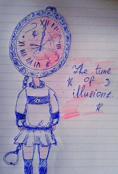 (Коли була мала, чомусь я любила малювати людей із годинником замість голови. Ось одну фотку знайшла.)