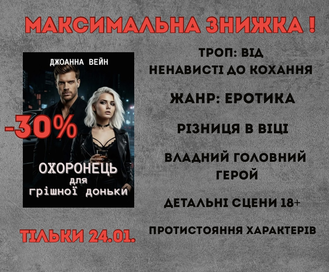 Мої любі герої в книзі "Охоронець для грішноі доньки", дійшли до того етапу стотунків, що помітка на книзі 18+ цілком виправдана. А тут я вам ще й знижечку приготувала: 30%