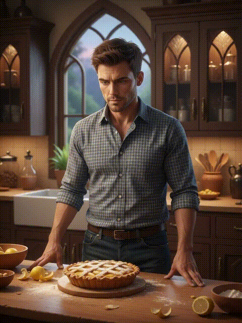 — Пиріг тобі готую, — відповів він так легко, ніби нічого не трапилось. — Кухня в тебе, звісно, велика.