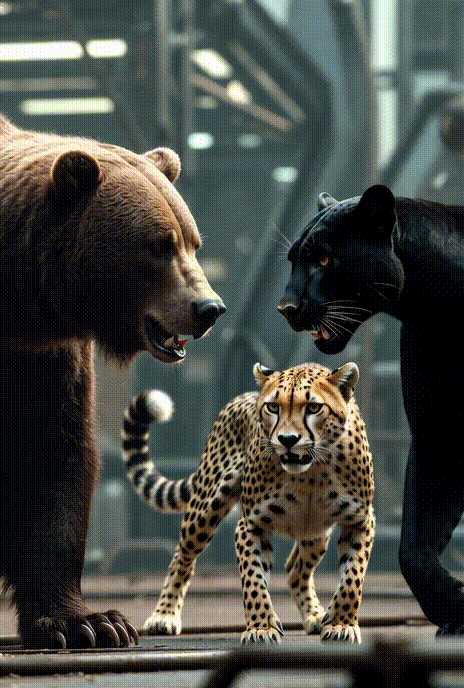 Скориставшись розгубленістю Бріона, гепард звільнилася, облизавши носа. Вона пригнулася, вишкірившись. Блискуча чорна пантера всадила білосніжні зуби у плече ведмедя. Той загарчав, підвівшись на задні лапи. Джей висів на ньому, не припиняючи гарчати. Складочки на носі виказували невпинний гнів на ветерана.