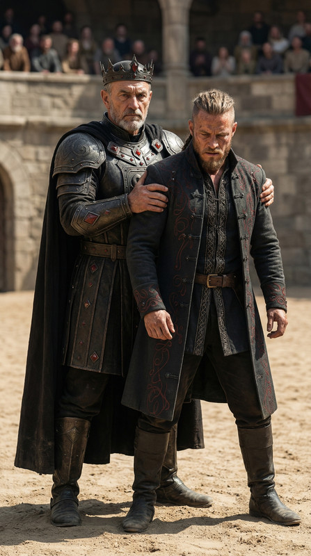 По дорозі підхопив меч і, не зупиняючись, атакував незнайомця. Кількома різкими ударами вибив зброю з його рук.