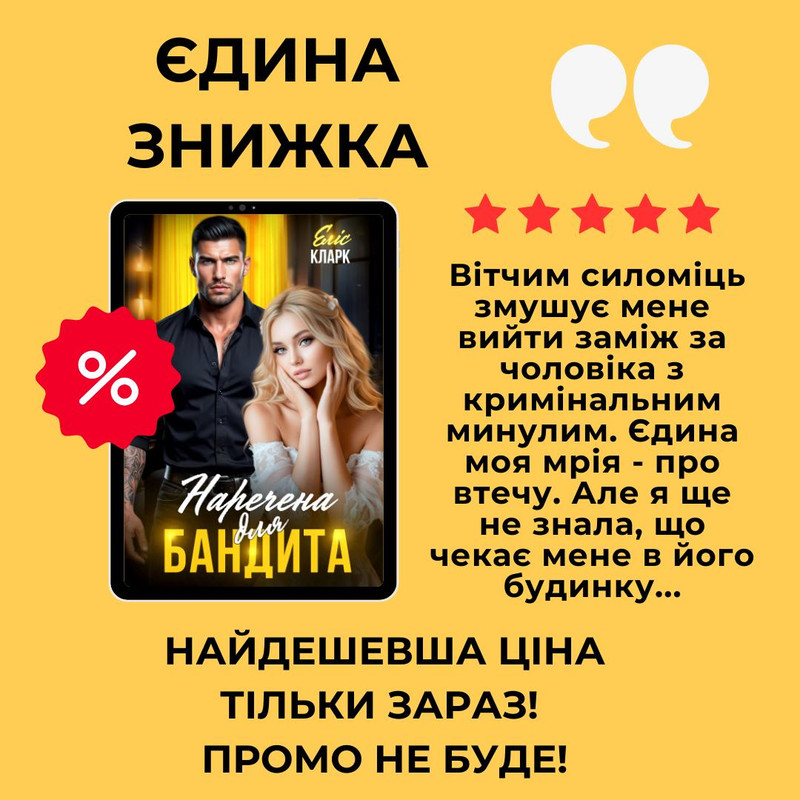 Друзі, запрошую до романтичної історії від Еліс Кларк "НАРЕЧЕНА ДЛЯ БАНДИТА"! Сьогодні на цю книгу діє єдина знижка в передплаті!