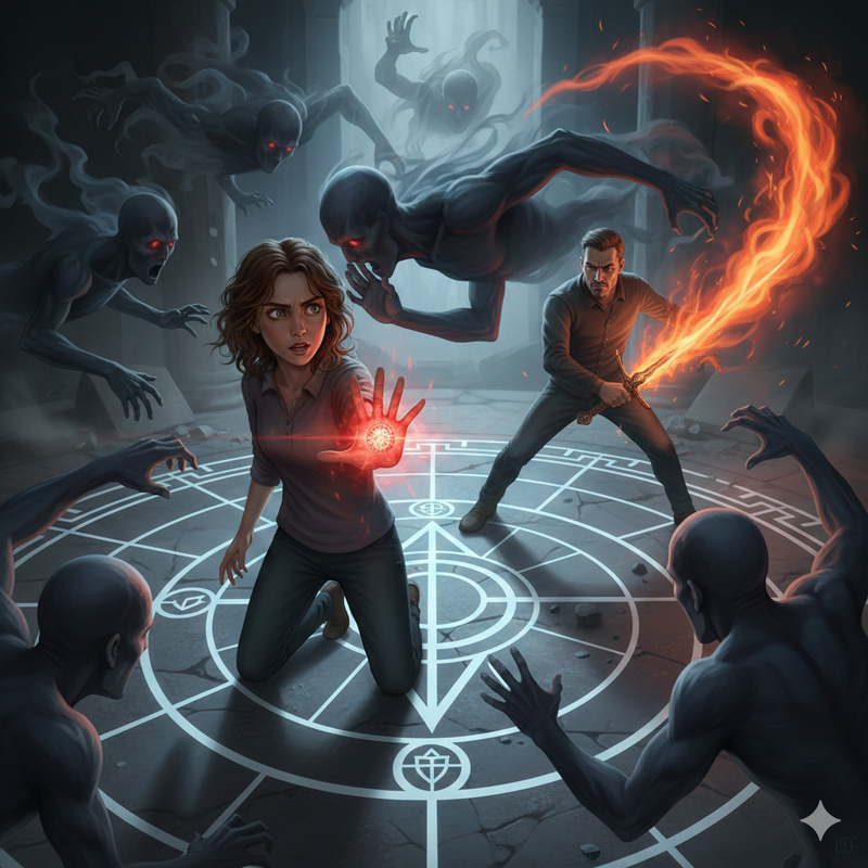 Коли вона торкнулась символу і простір довкола здригнувся. Із темряви почали проступати фігури. Прозорі, тремтливі, як дим над вогнем. Вони не мали лиця, але кожна несла в собі спалах бажання. Одне помститись. Інше відродити минуле. Третє забути все.