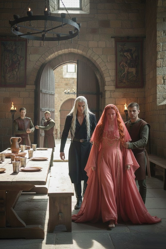 Я із цікавістю дивлюся туди, куди показує принц, й у двері заводять дівчину з вогненно рудим волоссям. Її обличчя прикрите вуаллю, але фігурка й шевелюра змушують моє серце битися сильніше.