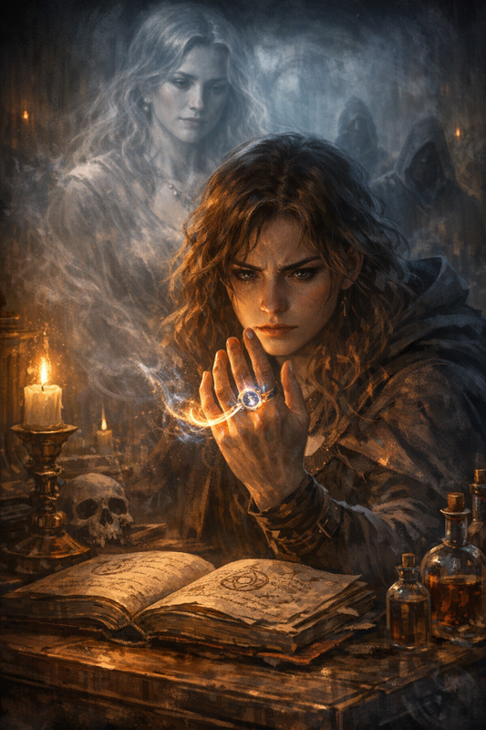 Через кілька хвилин перед нею з’явився старий щоденник, що був схований серед інших артефактів. Його обкладинка була покрита темним шкіряним покриттям, яке здавалось майже живим. Лу одразу відчула, що це те, що їй потрібно. Її пальці торкнулись сторінок, і в той момент вона побачила своє відображення у кільці, яке залишалось на її пальці. "