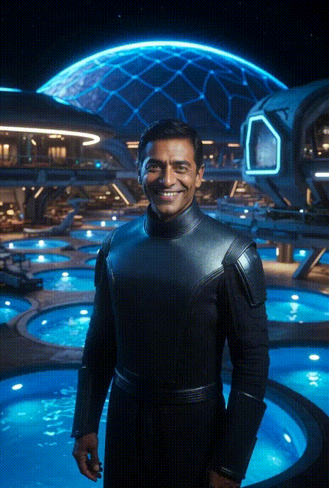 Амун знову широко всміхнувся, натискаючи кнопку на плечі і його вбрання видозмінилось на костюм для серфінгу, а у руці була моторна дошка із анімаціями дельфінів.
