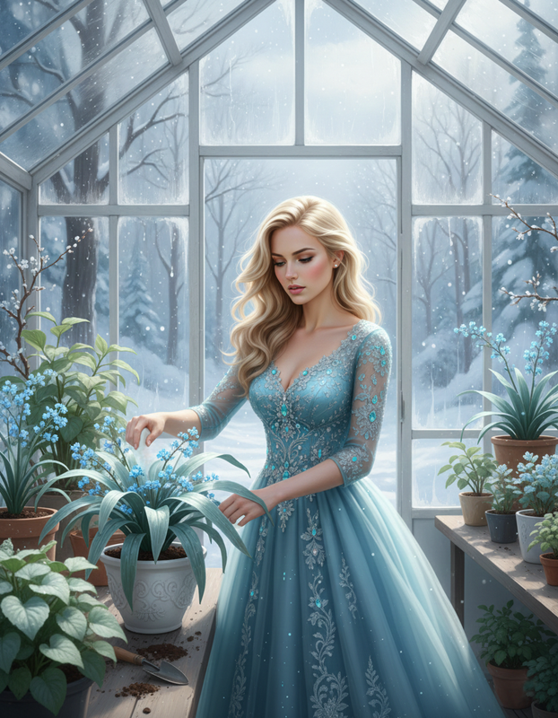 Я вирішила не зволікати. Обережно пересадила хіорн у горщик, підібрала ґрунт, який імітував природну мерзлу землю, і виставила навколо магічні кристали, налаштовуючи стабільну, правильну температуру. Додала кілька крапель підтримувального зілля — рівно стільки, щоб не зашкодити. Потім обережно перевірила хіорн магією. Це була лише спроба. Але рослина знову відгукнулася — слабко, ледве відчутно, проте відгукнулася.