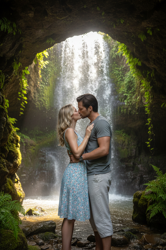 Адам нахилився і несподівано поцілував мене. Спочатку обережно, майже несміливо, ніби боявся, що я відштовхну. Але я не відштовхнула. Я відповіла на поцілунок ще до того, як встигла щось усвідомити. Світ звузився до шуму води, його теплих рук і мого пришвидшеного дихання. Водоспад глухо гуркотів поруч, краплі літали в повітрі, осідали на шкірі, на волоссі, і все це здавалося нереальним, ніби кадр з фільму, а не справжнє життя.