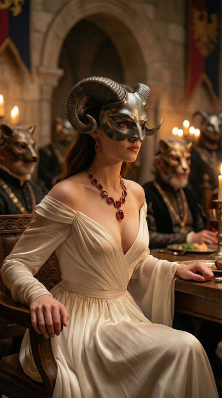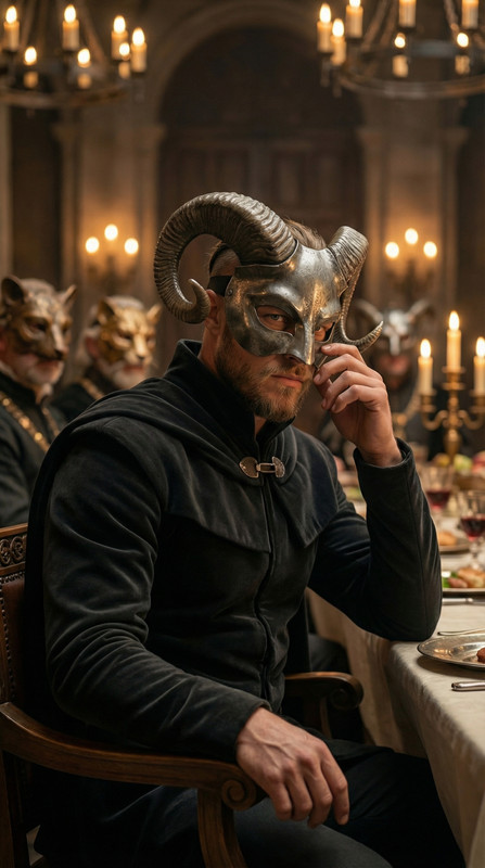 У масці з гравіюванням коней.