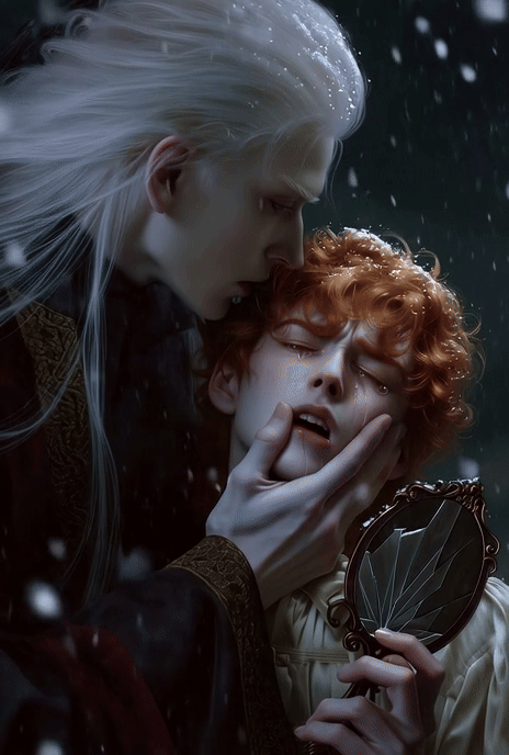“— Іди до мене. Іди, — Юйер схопив його в обійми однією рукою. Другою склав віяло й дістав дзеркало, змушуючи подивитися в уламок, щоб повернутися в Лімбо.