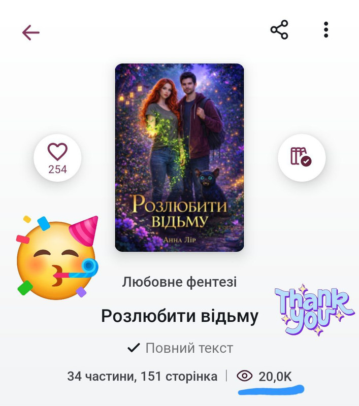 У "Розлюбити відьму" 20 тисяч прочитань!✨
