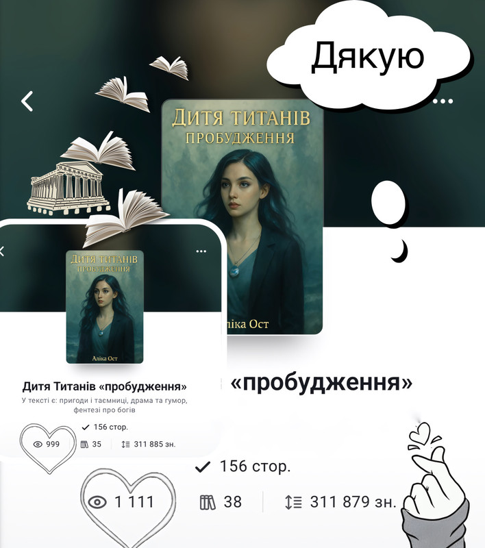 Моя книга "Тінь її обітниці" вийшла лише місяць тому, а вже набрала 2000 прочитань! Не можу висловити навіть, як мене це тішить! Я хочу подякувати всім, хто читав цю історію, залишав коментарі, підтримував мене. Ви найкращі! Також