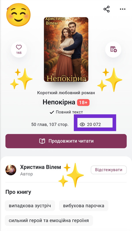 Сьогодні зранку я зловила чудову цифру - 20 000 прочитань на книжці Непокірна.