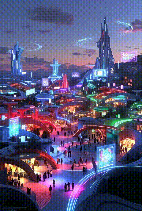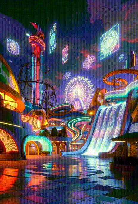Фей-Ф’ючер був велетенським, сам парк за розмірами нагадував містечко, поділене на райони, кожен з яких охоронявся і мав маленькі будиночки із “екстренниками”, якщо раптом комусь стане зле. Всі будівлі мали різні кольори та сяяли яскравими неоновими вогниками, від яких перехоплювало подих. Декоративні пальми, кипариси та кактуси були вкриті світлодіодами, що переливались анімованими зображеннями. До головного офісу, де переможці забирали (і неодмінно декларували) подарунки за пройдені квести, вела доріжка з жовтого каменю, як у всіма забутій казці.