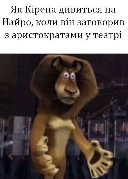 Я не знаю, я чомусь подумав про старі меми. І мені згадався той самиймем з Мадагаскару з Алексом. І я не знаю... Я відкрив картинки і ледь не луснув. Насолоджуйтеся, я навмисно)