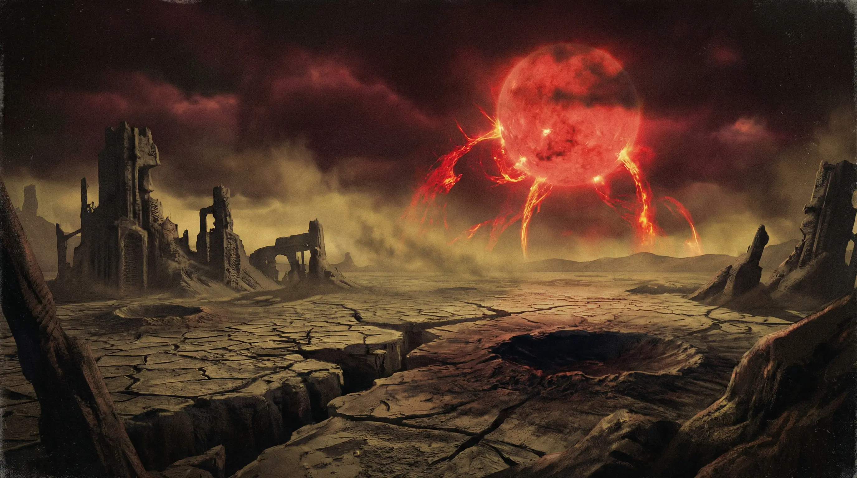 Пейзаж Хадесії — це хаос із розтрісканого пісковика та темних кратерів.