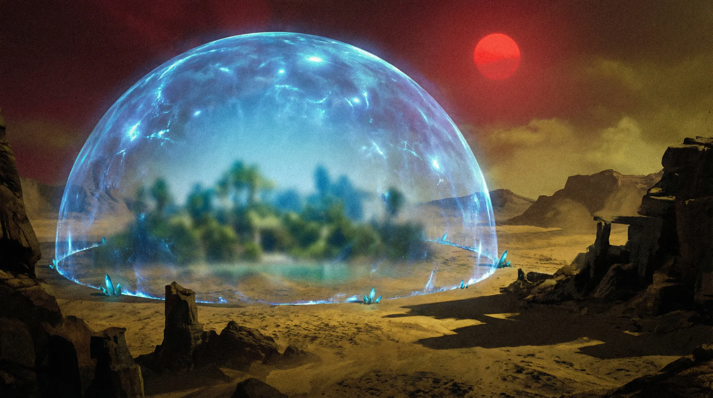 - Вони облаштували базу під спеціальним енергетичним куполом, який захищає справжній оазис із живими рослинами.