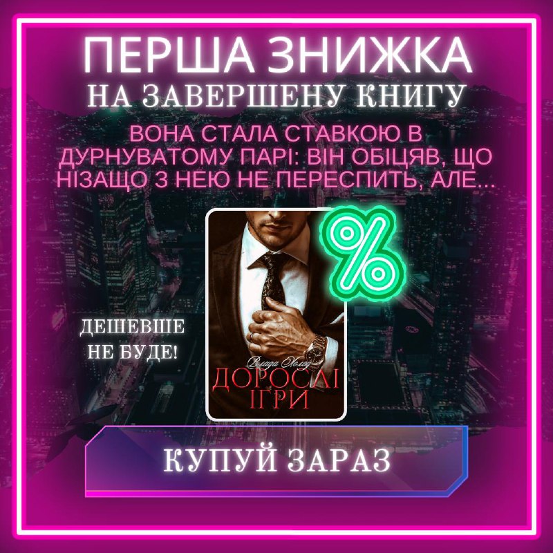 Запрошую до романтичної історії від Влади Холод "Дорослі ігри"! Сьогодні на цю щойно завершену книгу діє перша знижка!