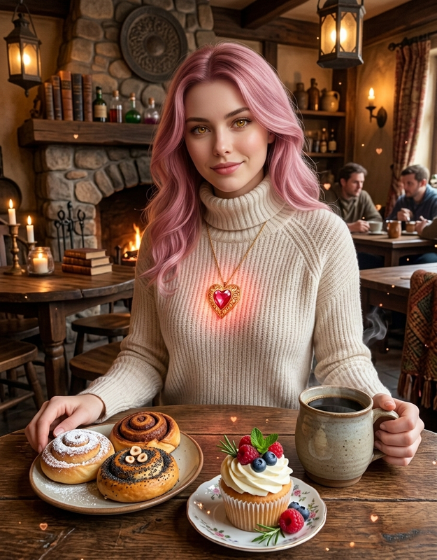 Не встигла я зняти пальто і все роздивитися, як Сеймур вже приніс мені тарілку зі свіжою, ароматною випічкою — три невеличкі булочки у вигляді завитків з різною посипкою і один кекс, прикрашений шапочкою з крему, листочків м’яти, гілочок розмарину та ягід. І, звісно, велику чашку кави.