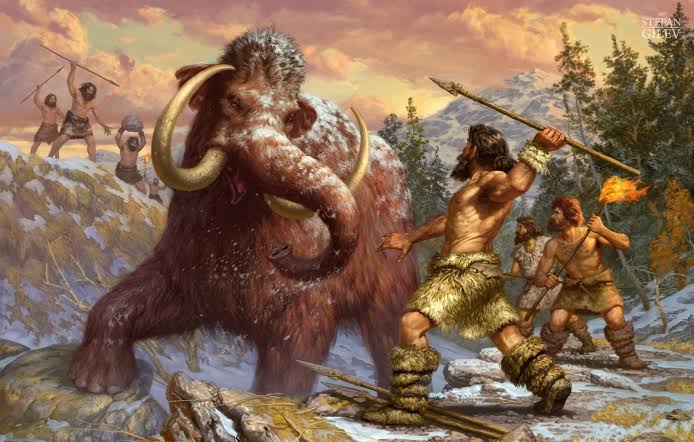 На третій — полювання кроманьйонців на мамонта.