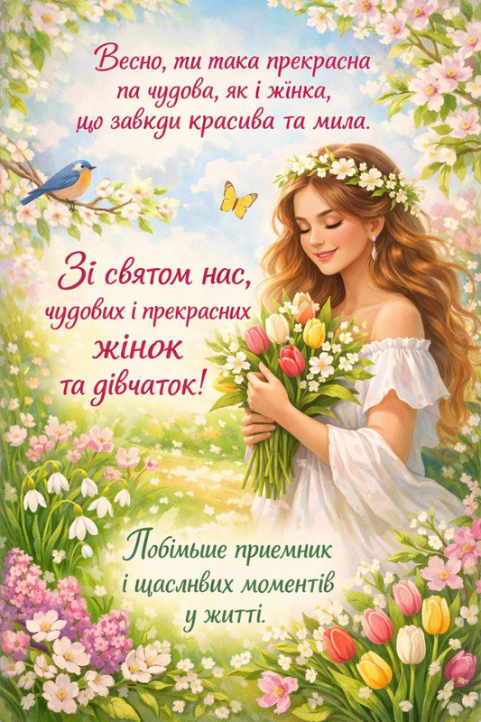 Привіт усім! Вітаю кожну жінку та дівчину зі святом весни й жіночності. Ви надихаєте, захоплюєте та змінюєте цей світ на краще. Дякую за вашу неймовірність!