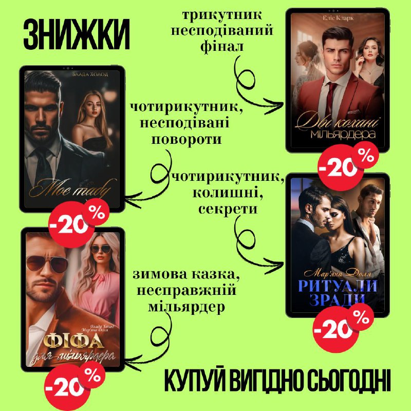 Добігають кінця останні години знижки на мій роман "Дві кохані мільярдера"!