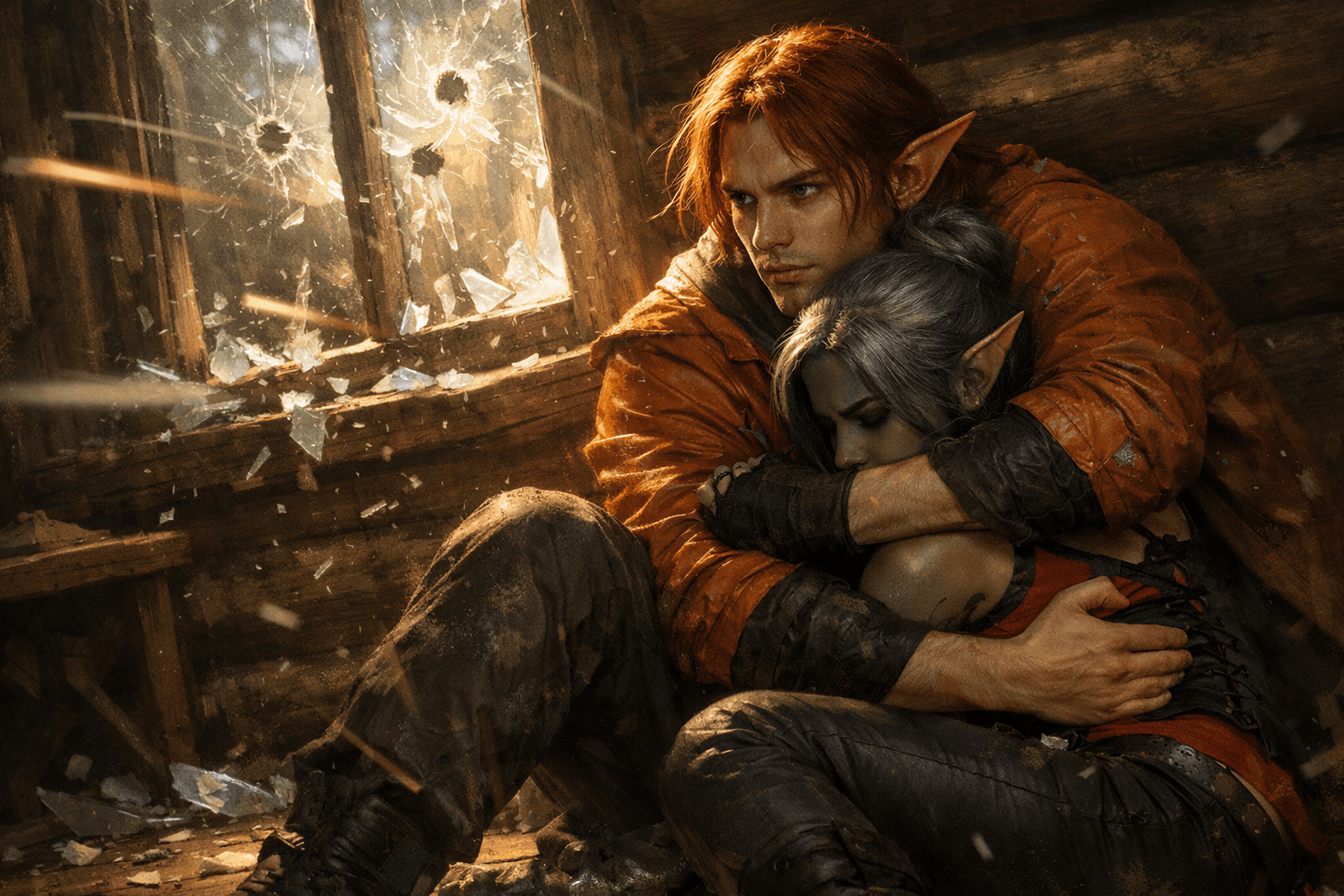 – На підлогу! – ельфи пригнулись, і вчасно – за першою чергою послідувала ще одна, вибиваючи залишки розбитої шибки та тріски з віконної рами.