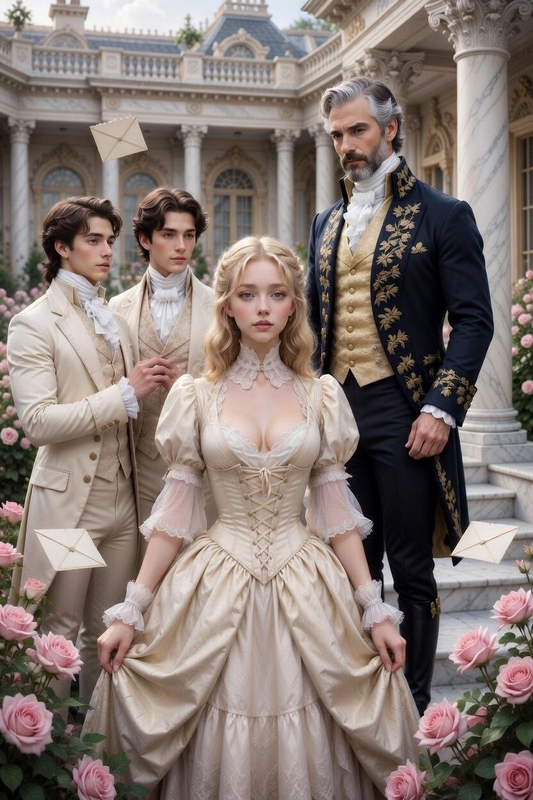 Чоловік зліва - то Бастіан(середня дитина), слідом - Октавіан(старший). Чоловік зправа, відповідно, батечко родини Розенталь, що й увів п'ятого нареченого власної доньки.
