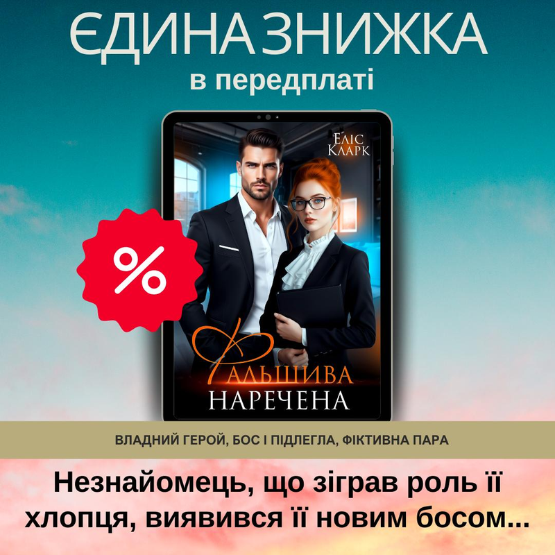 Любі читачі, запрошую до мого роману "ФАЛЬШИВА НАРЕЧЕНА"! Сьогодні на цю книгу діє єдина знижка в передплаті!