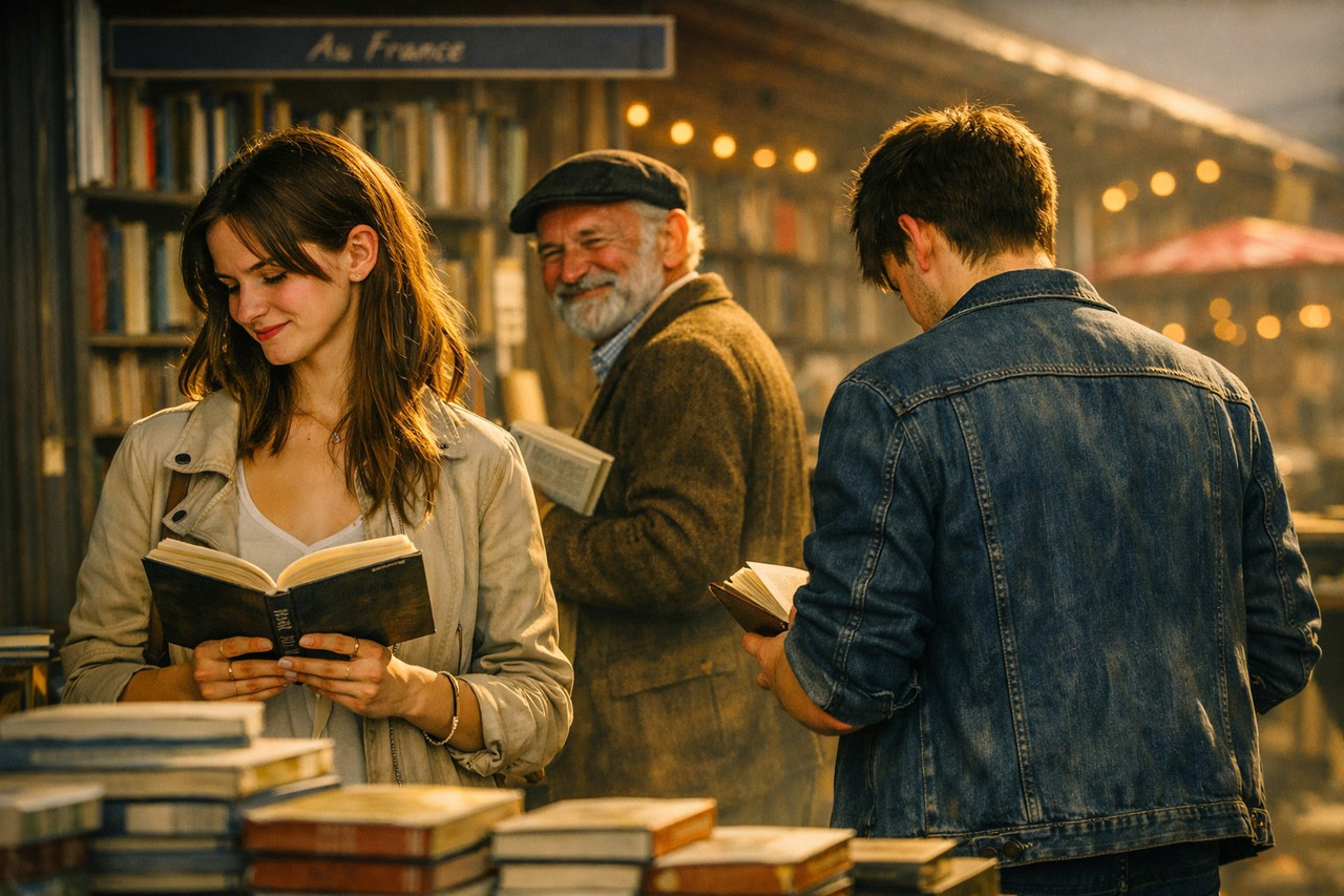 Тут ви знайдете книжки на будь‑який смак. Підходьте, перебирайте. Романи. Журнали. Інколи трапляються й непогані нотні збірки минулих років — для тих, хто хоче потішити свою ностальгію.