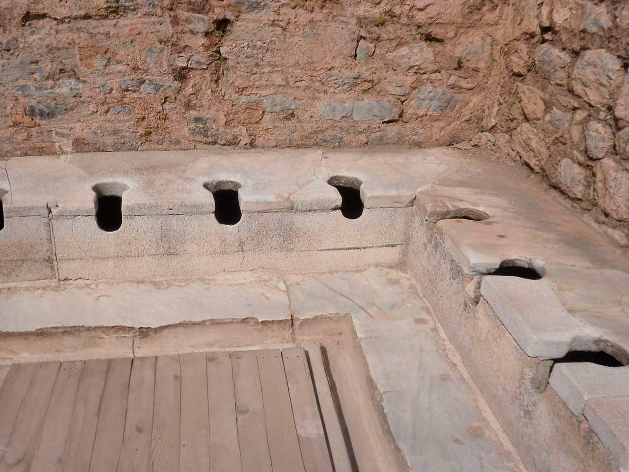 Перше фото - римські громадські вбиральні. Там ще додавався раб з довгою палицею, обмотаною на кінці тканиною, щоб підтирати шановним громадянам дупи)
