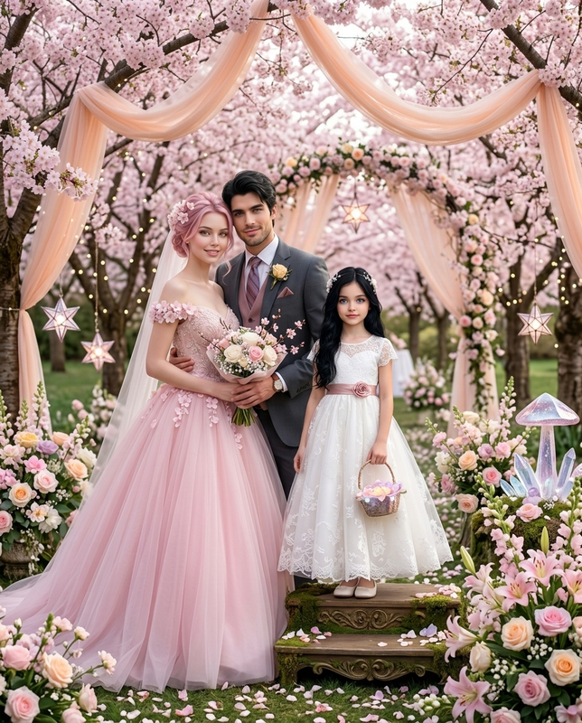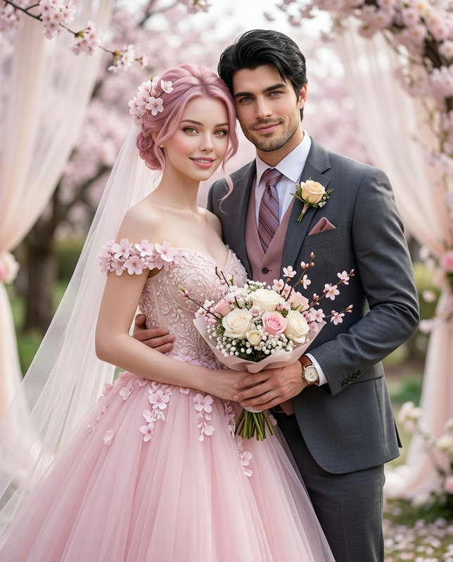 Несподівано для всіх, окрім Джемми, яка допомагала мені з вибором сукні, я замість білої вибрала ніжно-рожеву, трохи світлішу за моє волосся. Вона була прикрашена ніжною вишивкою й квітами сакури, якими я прикрасила і волосся.