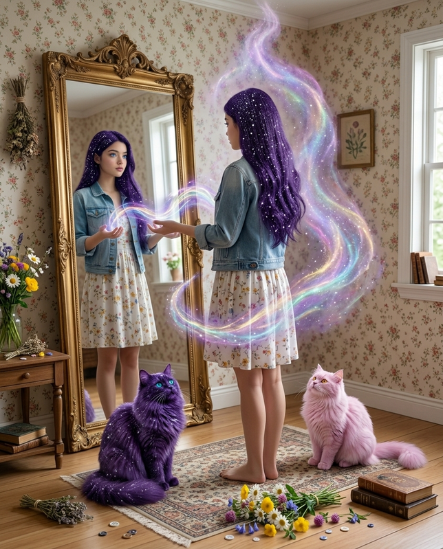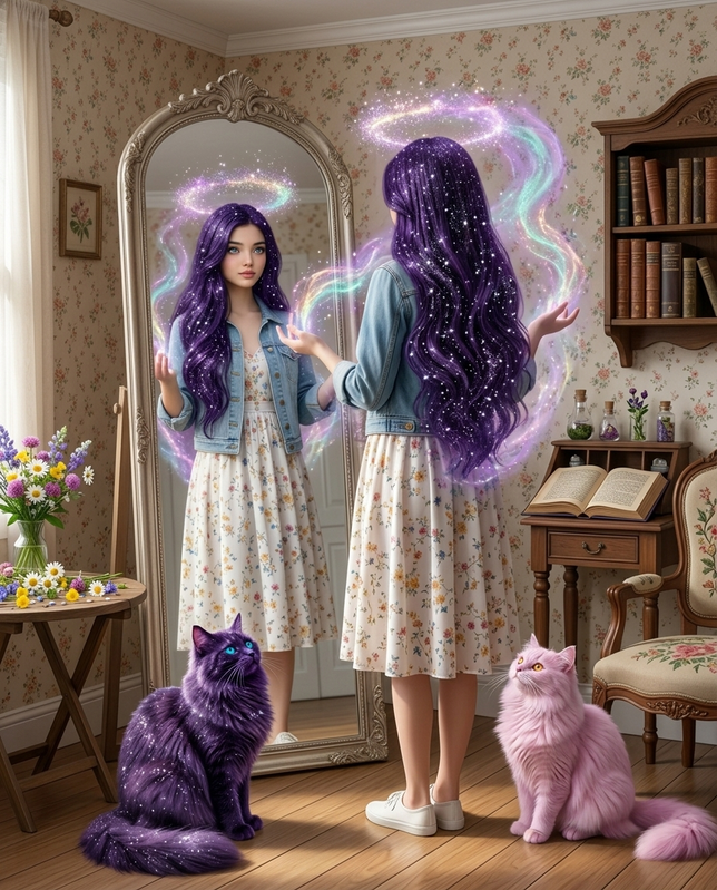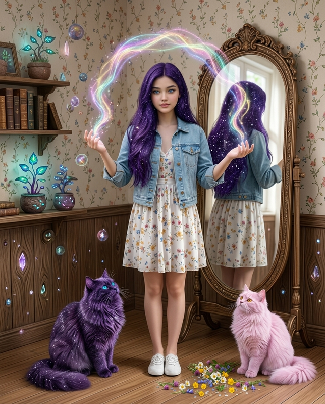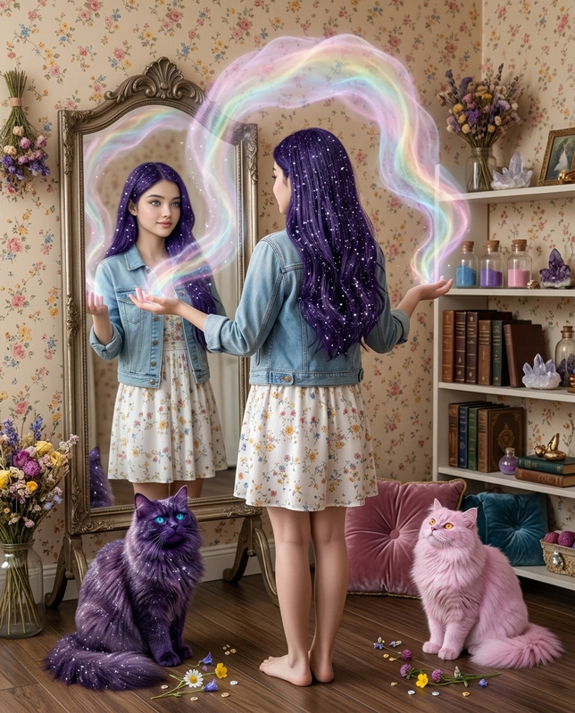 А це вже більш доросла Джемма вкотре змінює магією колір котам))) Коти не страждають. Чесно-чесно! Їм вже навіть подобається.❤️
