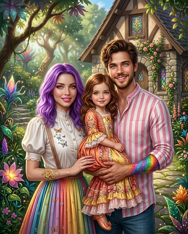 А це Офелія разом з Купером і їх дочкою Корнелією. Хоч волоссям пішла в татка, але вдягатися любить як мама.❤️ І я навіть не забула про татуювання Офелії, про яке згадувала в першому розділі. Бо на весільному фото про нього забула)))