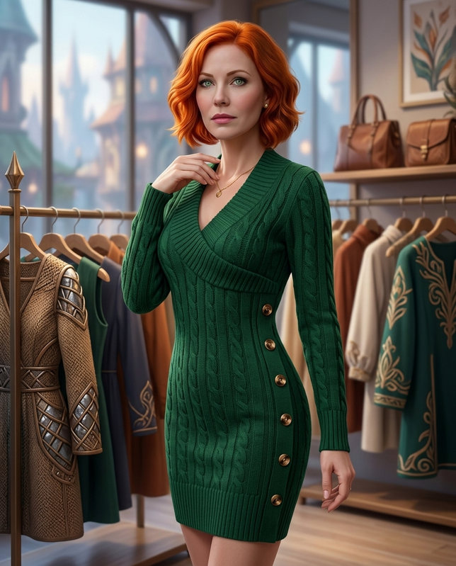Від светрів ми перейшли до суконь. Я знову не втрималася й вибрала дві однакові в’язані сукні — темно-зелену й лавандову.