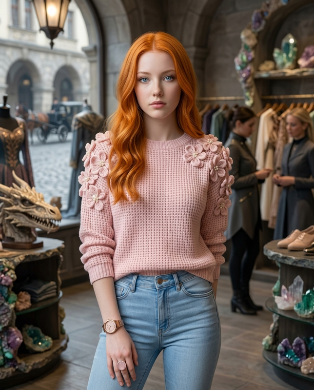 — Нейде, — Ліа витягнула приглушено-рожевий светр з об’ємними косами, — не хочеш такий примірити?