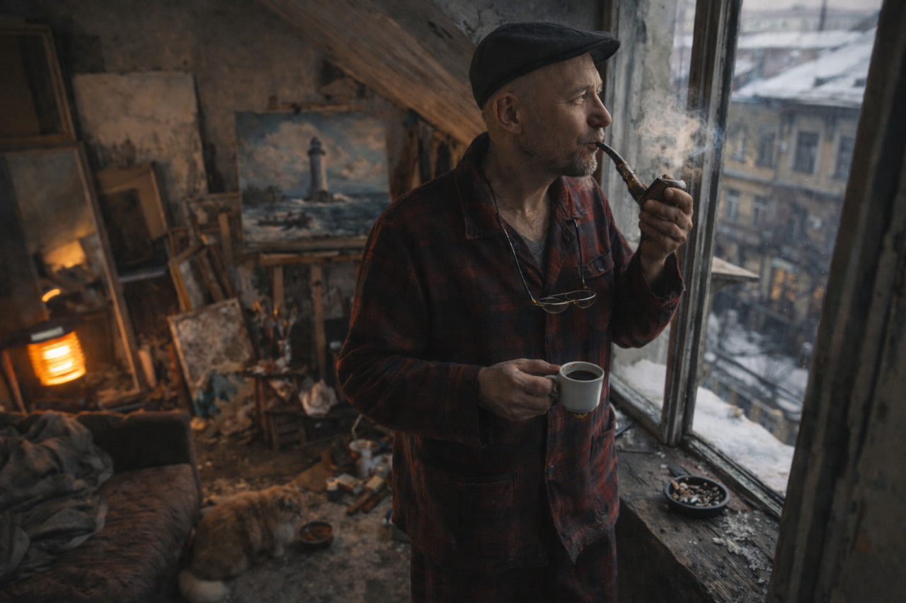 Із задоволеним белькотінням він перелив запашну каву із турки у філіжанку. Апетитно принюхався до неї та сьорбнув із задоволенням, ледь не обпікши губи. Затим заходився дбайливо набивати запашним тютюном велику покручену різьблену люльку, немов позичену в самого гетьмана Сагайдачного.
