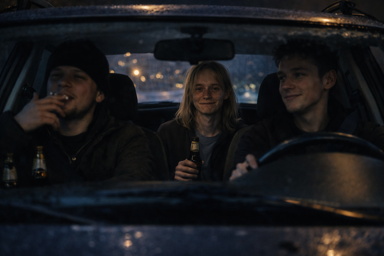 Кіріл засміявся, як і личить при хлопчачій розмові про дівчат, та із задоволення поринув у вир заборонених задоволень, які робили його, як він сподівався, своїм серед хлопців: запалив цигарку, підчепив одну з пляшок пива “Девятка крєпкоє”, що лежали у пакеті на сидінні поряд, та підставив обличчя прохолодному вітру з вікна, який розтріпав йому волосся (ох і отримав би за це на горіхи від матері, якби вона побачила!).