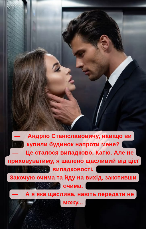 Не встигаю нічого відповісти, бо ліфт смикається і в кабінці стає темно. Я не знаю, як це трапилося, але з переляку видала такий вереск, що в мене самої вуха заклало. А далі я навіть не зрозуміла, як опинилася в міцних обіймах Трояна.