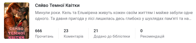 Чесно — мені складно це писати. Книгу "Кодекс зради. Дружина найкращого друга" зараз читають дуже мало…( Якщо й читають то тільки перші розділи) І я не знаю, це лише мені так «щастить» з активністю, чи у