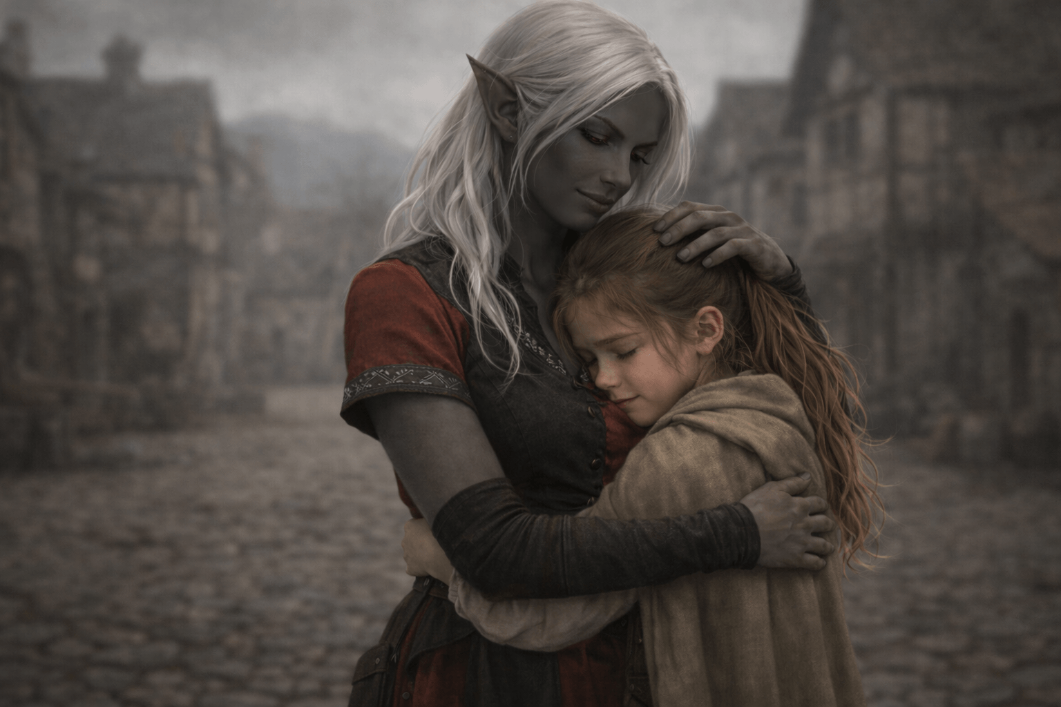 – Я… я не хотіла… щоб ти помеееерла, – дівчинка не стрималась і все-таки розридалась, уткнувшись обличчям у червоно-чорну сукню ельфійки.